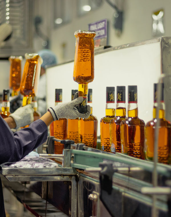 Our bottling operations are also carried out at the Sansarpur Terrace facility Himachal Pradesh. Since humble beginnings of setting up the plant in 2015, we are currently bottling 1.5 lac cases per month, with plans in place to expand the capacity. With 5 bottling lines for IMFL and Country Liquor, and having the provisions for chill filtration as mandated by global brands for premier blended spirits, we have ties with many popular brands. Our bottling plant is fully automated, ensuring the elimination of contamination due to human error.